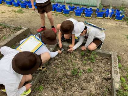 春の生き物を見つけ、虫めがねを使って詳しく観察をしていました。