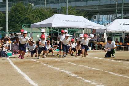 3 団体演技「ハッピー オー ライ」(嵐の曲に合わせて元気いっぱいに踊っていました。高度な隊列変形やステップが多く入っていましたね。最後のポーズもきまりましたね!)