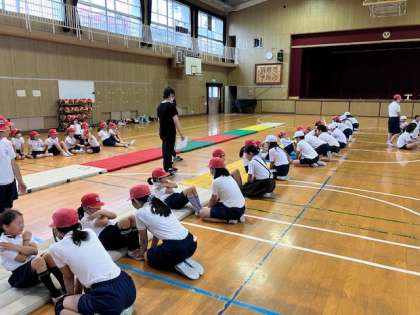 天候が悪いため、講堂でできる種目に取り組んでいます。