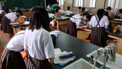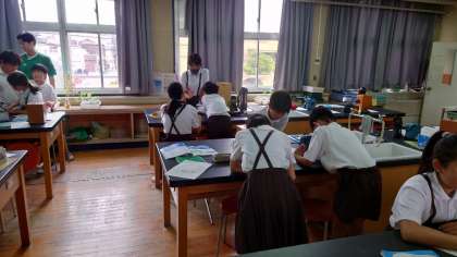 5年生の理科の学習の様子です。メダカの卵を解剖顕微鏡をつかって観察していました。メダカの卵が見えたら、「見れた!」と大喜びでした。卵の中に二つの黒い目を見つけているグループもありました。