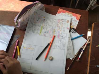 4年生は、総合的な学習で「韓国・朝鮮の文化」を調べ、それを新聞にまとめる学習を行っています。