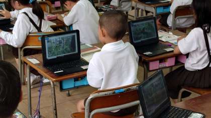 1年生が、生活科で育てているアサガオの成長を記録していました。この間使い始めたばかりのタブレットを使って写真を撮ってきたようです。