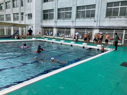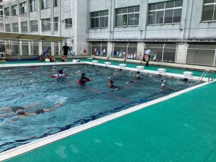 1km遠泳に向けて、放課後練習に取り組んでいます。