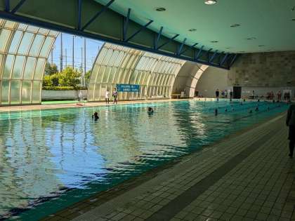 遠泳班1.2班のウォーミングアップが始まりました。開始は予定通り10時30分頃になります。