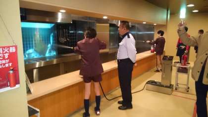 子どもたちは、地震に関するDVDを見た後、地震バーチャル体験や防火体験、119番体験などを行いました。