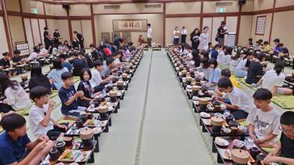 待ちに待った夕食の時間です。食事係の号令で、「いただきます!!」