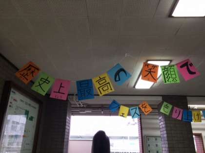 今週の土曜授業は、田辺フェスティバルです。今年のスローガンは、「歴史上最高の笑顔でフェスをもり上げよう!」です。