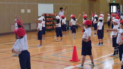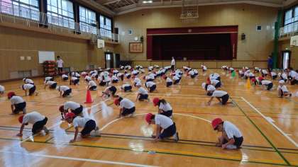 1年生の運動会練習の様子です。隊形移動を繰り返し練習していました。ダンスの振り付けもよく覚えられていました。