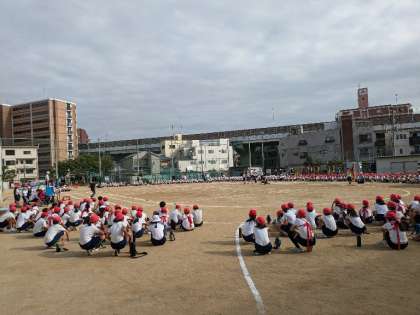 いよいよ今週末は待ちに待った運動会です。その成功に向けて今日、明日と全体練習を行います。今日は開会式、ラジオ体操、応援合戦の練習を中心に行いました。話をよく聞いて取り組むことができました。