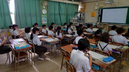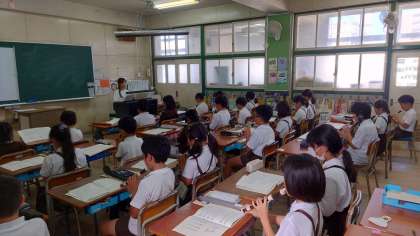 3年生の音楽科の学習で、リコーダーの練習をしていました。難しいリズムの曲でしたが、休符に気を付けて練習していました。