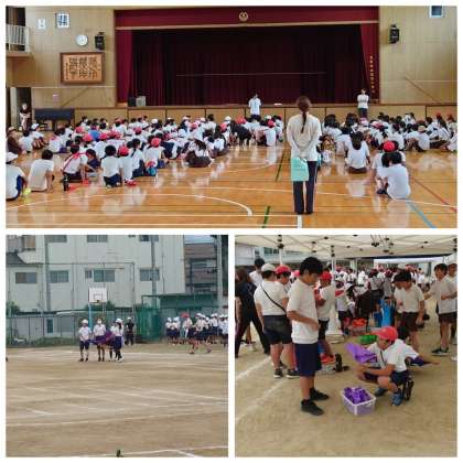 昨日に引き続き、今日の6時間目は、5・6年生と応援団の人たちで運動会の準備でした。役割の練習を繰り返し行ったり、準備物の確認をしたりしていました。