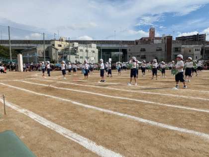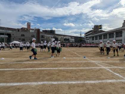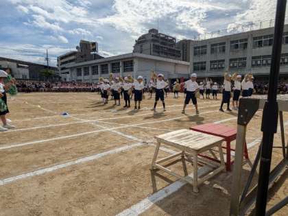 田辺小学校で初めての運動会です。みんな一生懸命踊っていました。笑顔も素敵でした。