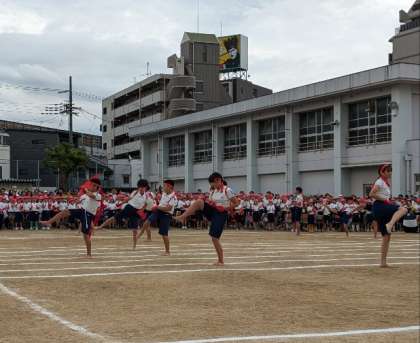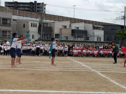 応援合戦の様子です。自分たちの組の応援だけでなく、互いの応援もできた素晴らしい応援でした。