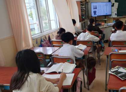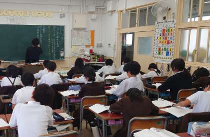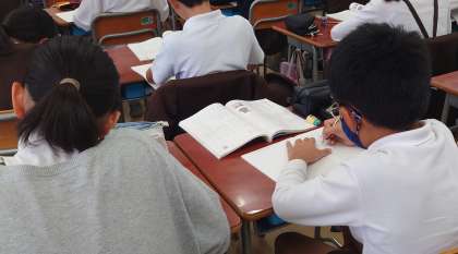 5年生の国語科の学習の様子です。熟語の構成の学習をしていました。漢字と漢字がどういった意味のつながりをしているか理解し区別できるように学習をすすめていました。