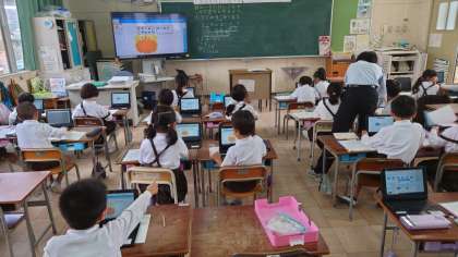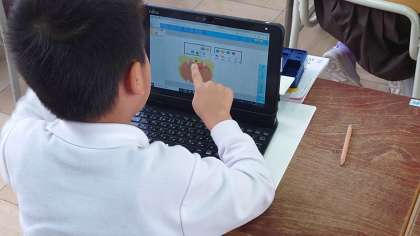 1年の算数科の学習の様子です。11〜18から1位数をひく繰り下がりのあるひき算の学習です。「10といくつ」という見方をもとに計算をすすめていました。また、タブレットを使って操作しながら計算の仕方を考えていました。スムーズに操作をすすめていたのに感心しました。