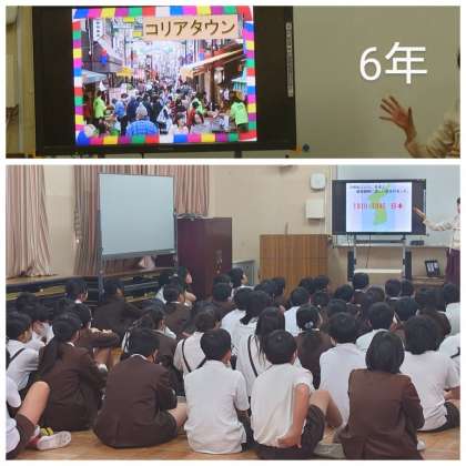 今日は、2・4・6年生の人たちが、ソンセンニムに学校へ来ていただき韓国・朝鮮について教えていただきました。2年生は講堂で遊びや楽器、4年生は、多目的室でハングルについて、6年生は、歴史的背景とコリアンタウンについて、と学年に応じた内容でお話していただきました。ありがとうございました。