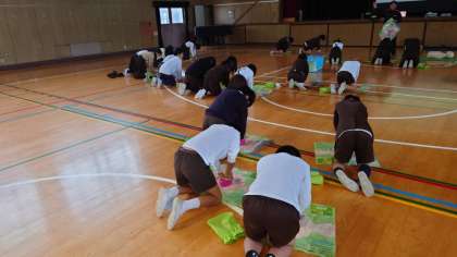 1〜5年生は、警察署、消防署、区役所の方に準備していただいた活動を体験しました。水消火器、搬送訓練、心肺蘇生の様子です。