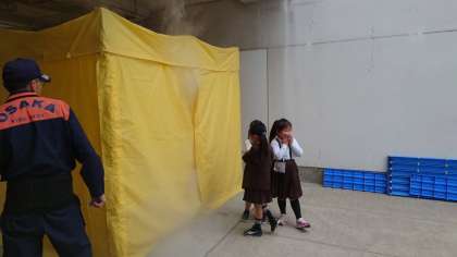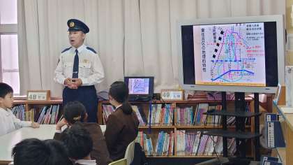 警察の方の講話、動画視聴、煙中体験の様子です。