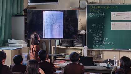 4年生の算数科の学習の様子です。今日は、帯分数−帯分数の計算の仕方を学習していました。計算をどのようにすればできるのか、ほかの人に説明しようと一生懸命考えていました。