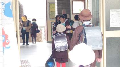 あいさつ週間の様子です。登下校時に当番の人たちが、あいさつをしてくれています。元気にあいさつをし合うととても気持ちがいいですね。