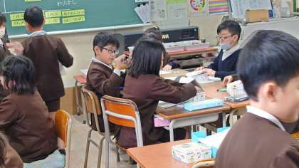 3年生の理科の学習の様子です。磁石につくものはどんなものか、予想をし、実験をして確かめました。つくと思っていたものがつかなかったり、逆につかないと思っていたものがついたりと、意外そうな表情を浮かべながら実験に取り組んでいました。