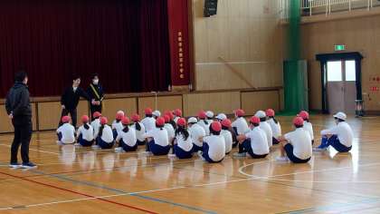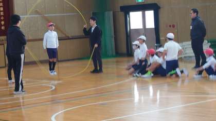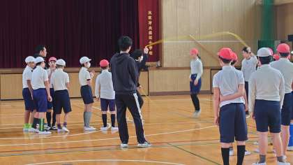 今日、夢授業として、ダブルダッチのパフォーマンスチーム「ファットマンクルー」の方に来校いただきました。世界大会で優勝したこともあるチームで、夢を実現するためにはあきらめない気持ちが大切だとおっしゃっていました。ダブルダッチもわかりやすく教えていただいたのでほぼ全員がダブルダッチを跳ぶ経験ができました。ありがとうございました。