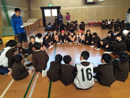 その大なわの取り組みに向けて、たてわり班で集まり、大なわ集会を行いました。
