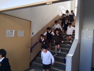 その後、津波が迫ってきていることを想定し、各学級が三階にあがる訓練を行いました。