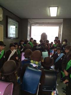 キャンペーンは、登校班ごとに行い、少し早めに登校して、玄関で元気よくあいさつとハイタッチを行います。