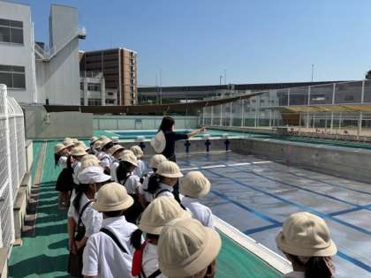 来週から始まる水泳学習に向けて、プールに入るための練習、確認をしました。