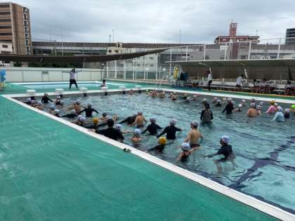 1年生は初めての大きいプールでしたが、6年生と一緒で安心して入ることができました。