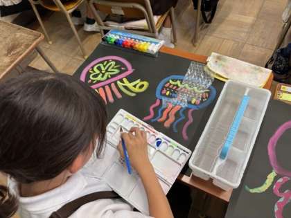 ひかるクラゲの絵画に取り組んでいます。