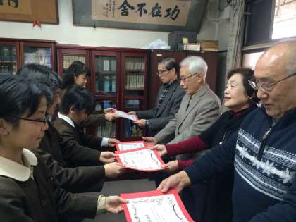 今日はそのまとめとして、下校時にお世話になっている見守り隊の方をお招きし、日頃のお礼を伝え、感謝状をおくる「あいさつ集会」を行いました。