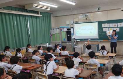 2年生の外国語活動の様子です。C-NETの先生の後に続いて発音の練習をしていました。とても上手に発音することができていました。
