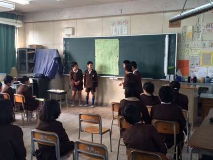 1・2限目は、教室で「一年間のまとめ」発表会を行いました。グループごとにこれまでに学習したことを壁新聞にしたり、クイズにしたりして伝えました。
