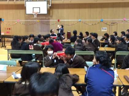 第1部は、6年生と担任の先生とで出し物などを楽しみ、第2部では、教職員を招待して、一緒にゲームをするなどして交流しました。