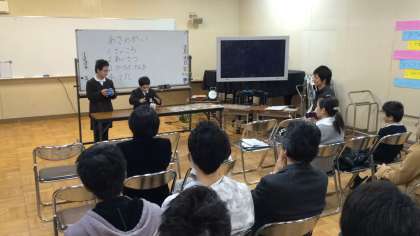 にこにこ学級の子どもたちが、一年間の学習の成果を保護者の方々に見ていただく、にこにこ発表会を多目的室で行いました。詩の朗読や、朝の会の係の仕事の様子、卒業にあたってのことばや、音読劇、計算など、今年度に学習してきたさまざまなことを、たくさんの人の前で、堂々と発表してくれました。