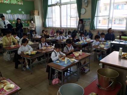 たくさんの保護者のみなさんの見守るなか、一生懸命に給食を食べている様子をみていただきました。