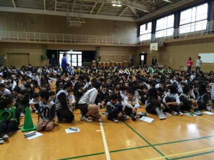 今日は、第1回目のたてわり集会ということで、講堂に集まり、自己紹介を行いました。