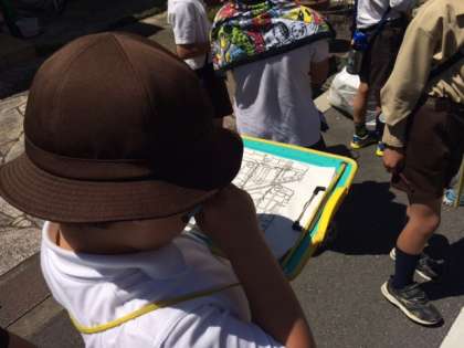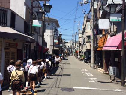 3年生は、田辺の町を歩いてめぐる「町たんけん」に出かけました。普段から見慣れた町並みですが、確かめながらゆっくりと歩いてみてみると、いろんな発見がたくさんありました。