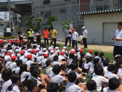 非常ベルがなり、避難訓練の放送が入ると、子どもたちは静かに放送の内容を聞き、避難する際には、「おさず・はしらず・しゃべらず・もどらず」のきまりを守って迅速に行動できました。