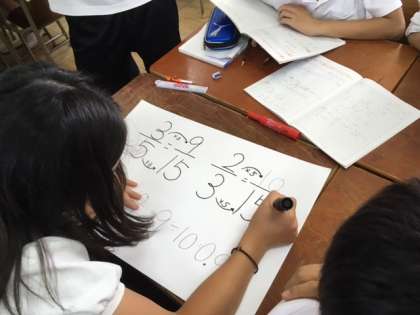 グループの中でよりよい考えを画用紙にかき、それぞれの方法を交流しあいました。