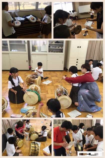 今日は、金先生に講師に来ていただき、4年生が民族教育体験学習を行いました。