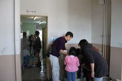 ふれあい清掃では、子どもたちの清掃活動場所を保護者の方と一緒に清掃します。
