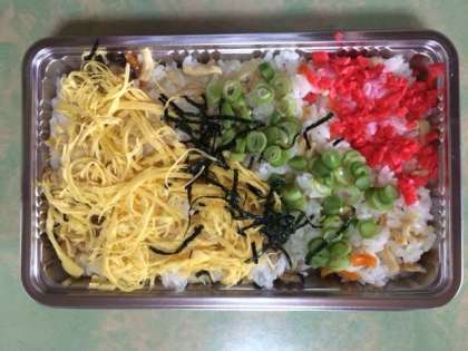 開舎式を終え、昼食タイムに入りました。昼食のメニューはちらし寿司です。