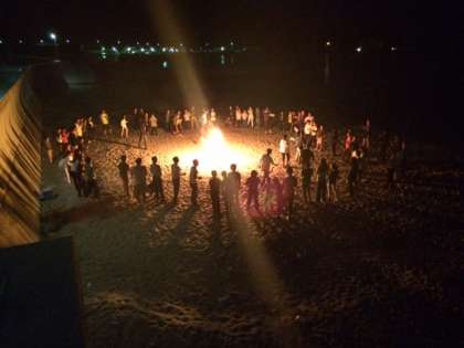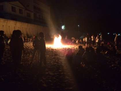 夕食のあとは浜に出て、キャンプファイアーを楽しみました。みんなで歌を歌ったり、踊ったりして、楽しい夜のひと時を過ごしました。