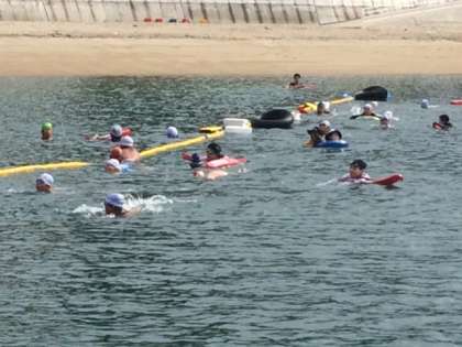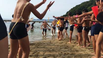 1km遠泳後半のチャレンジは3班4班です。前半の子どもたちの泳ぎを見て、勇気づけられた後半の子どもたちは、約60〜70分かけて、見事、全員泳ぎ切ることができました!今年の6年生も1km完泳です!