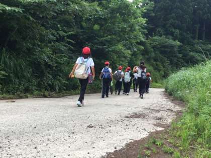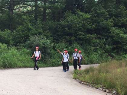オリエンテーリングでは、スタート地点から宿舎のかつみ屋までグループで歩いて向かいます。