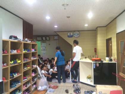 オリエンテーリングを終えて、今日からお世話になる宿舎かつみやに到着しました。到着後は、荷物を各部屋に入れて、避難訓練を行いました。