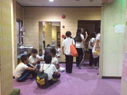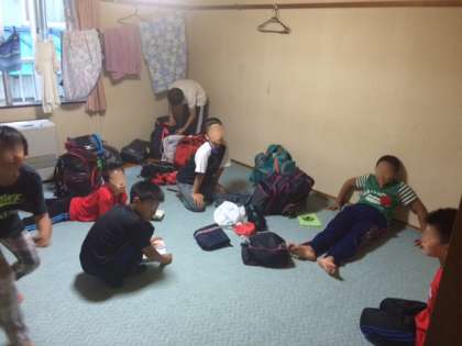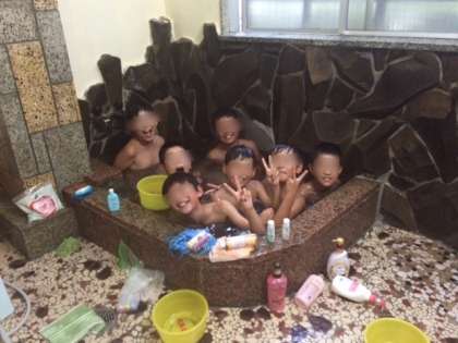 夕食までの間、入浴と部屋でのんびり過ごしました。それぞれの部屋では、生活班のみんなでなかよく遊んでいました。友だちと一緒に入るお風呂は楽しいものです!